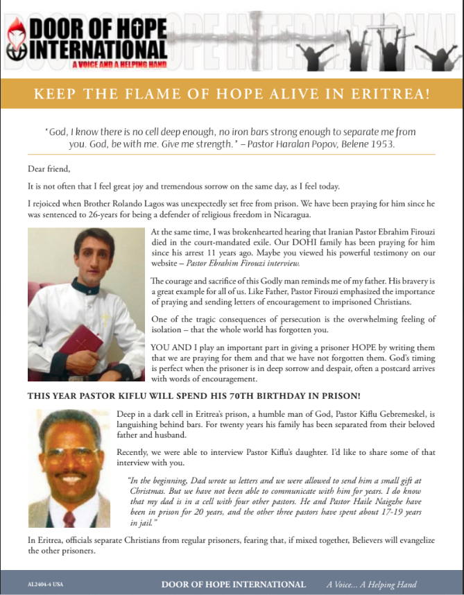 Let’s stand together with our brothers and sisters in Eritrea—bringing light into one of the darkest corners of the world.