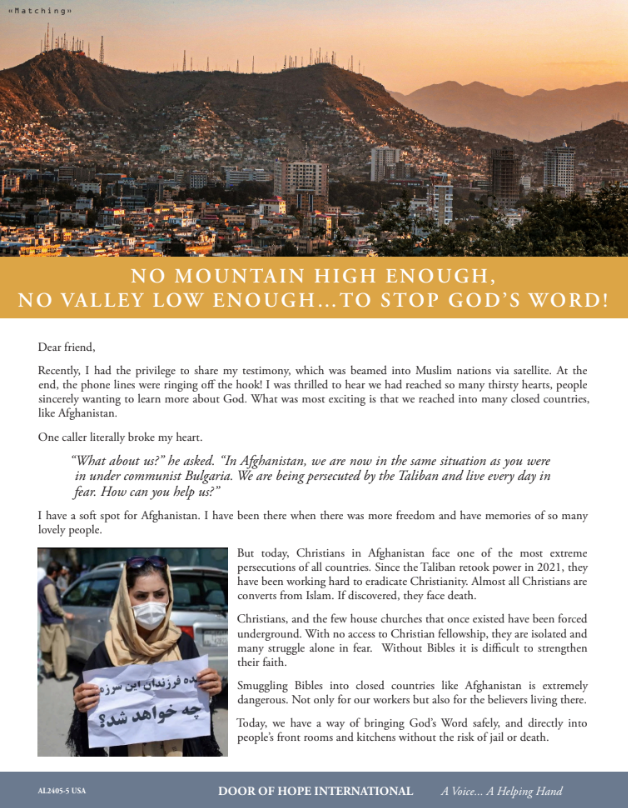 Will you join us in carrying the torch of the Gospel to the spiritually hurting in Iran and Afghanistan?